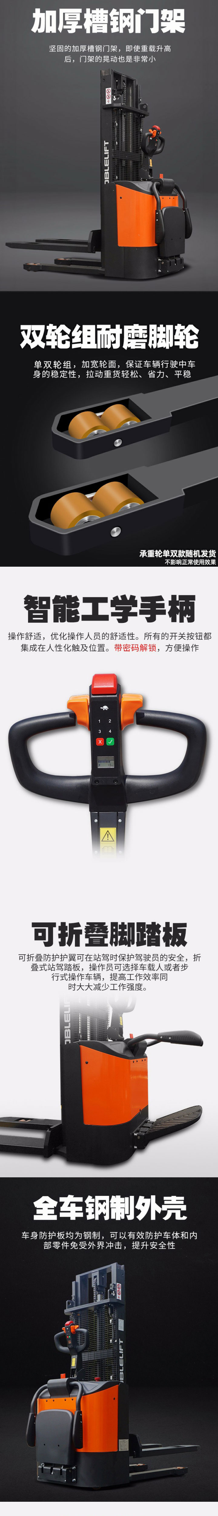 1.小型電(dian)動堆高車(chē)前叉和車(chē)架具有很(hen)強的耐久(jiu)力和性💋能(néng)。 2、底🔴盤采用(yòng)數控切割(ge)和自動焊(hàn)接機制造(zao)。電池盒與(yǔ)車㊙️架焊接(jie)成🈲一個完(wán)整的單元(yuán),确保全電(dian)動堆高車(che)的負載穩(wen)定性。