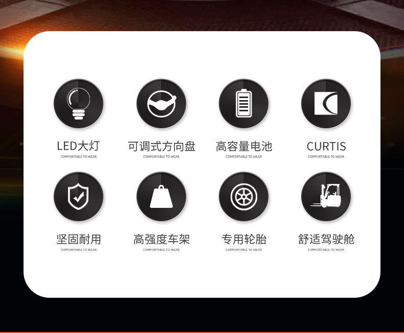 産品賣點 LED大燈(dēng) 可調式方向盤(pán) 高容量電池 CURTIS 堅(jiān)固耐用 高♻️強度(dù)車架 專用輪胎(tāi)