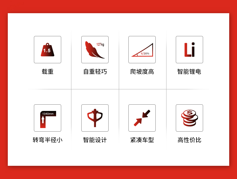 産品賣(mai)點 小噸(dun)位物料(liao)搬運的(de)理想方(fāng)案 緊湊(còu)&硬朗👨❤️👨的(de)🐉設⛱️計 自(zi)重小 锂(lǐ)電池快(kuai)速充電(dian)功能 零(ling)售店和(he)卡💚車等(děng)應用場(chǎng)合的理(lǐ)想方案(àn) 電池更(gèng)換簡易(yì)